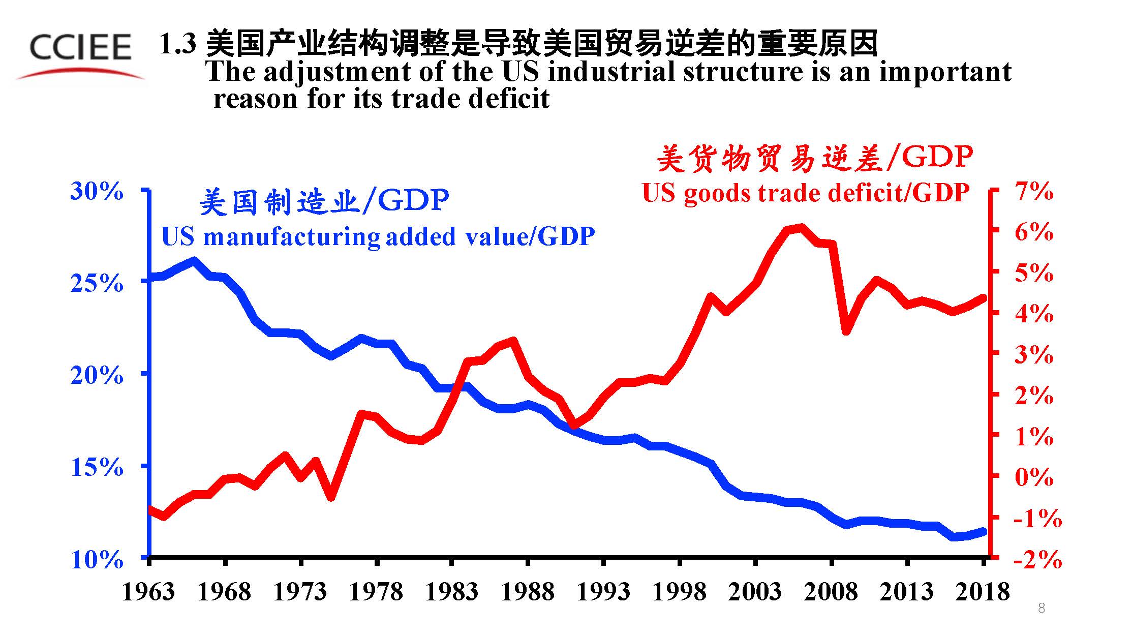 There has been a long history of the US trade deficit, which is closely linked to the dominance of the US dollar in the international monetary system, the domestic imbalance due to low savings and high consumption, the adjustment of its industrial structure and transfer of manufacturing overseas from the US.