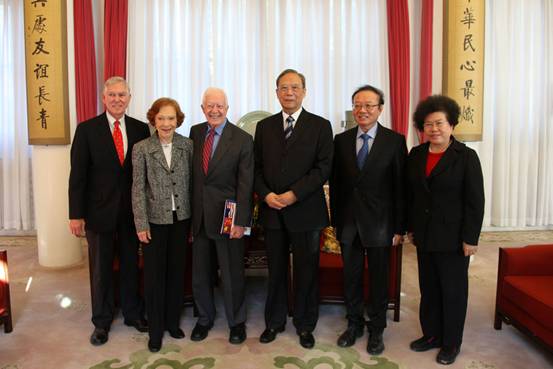 On December 9, 2011, Zeng Peiyan, Chairman of CCIEE met with Jimmy Carter, former US president at Zhongnanhai, Beijing. Also at the meeting were Mrs. Rosalynn Carter, former US First Lady, John Hardman, President and CEO of the US Carter Center, Liu Yawei, director of the China Program at Carter Center, Wei Jianguo, Secretary General and Chen Wenling, Chief Economist of CCIEE.